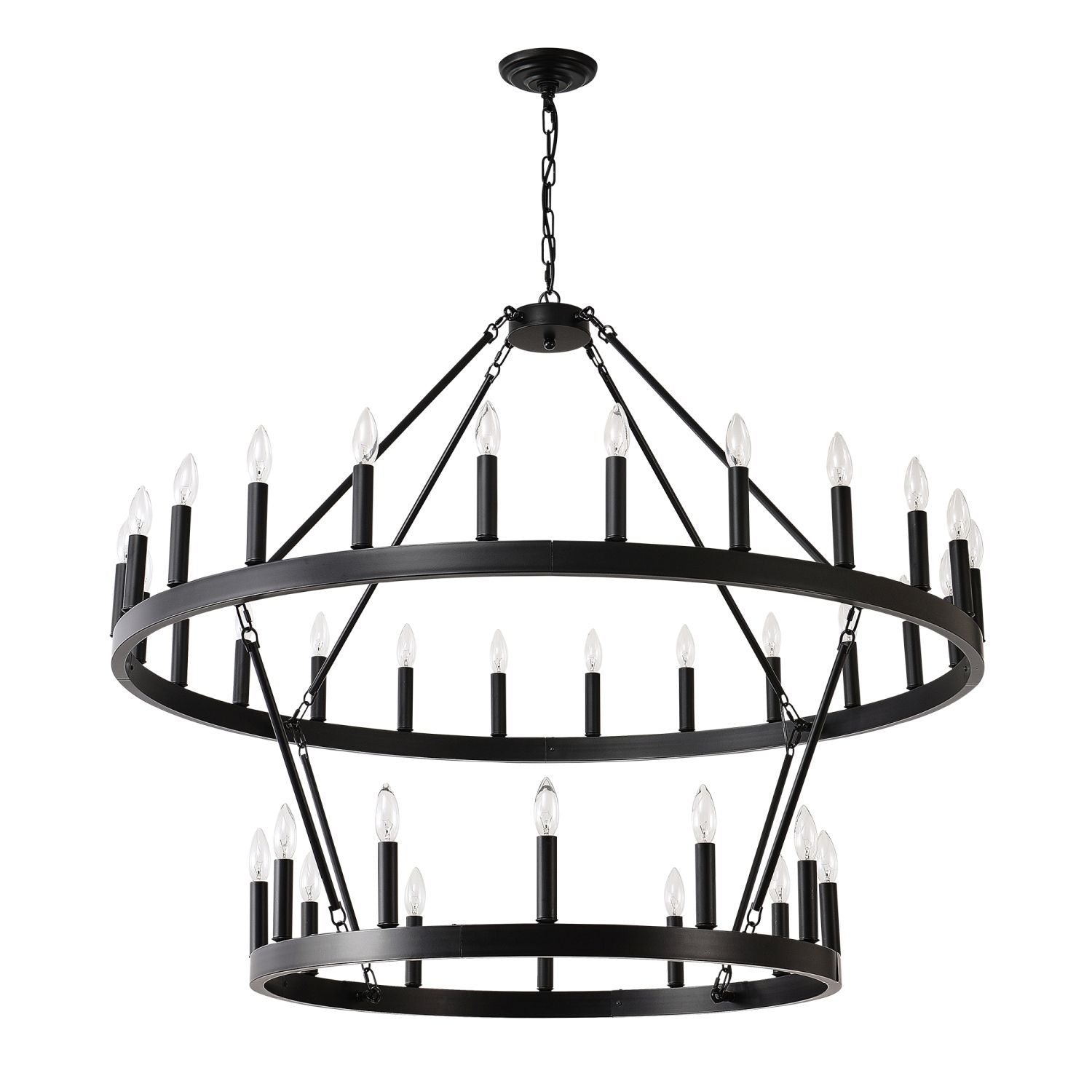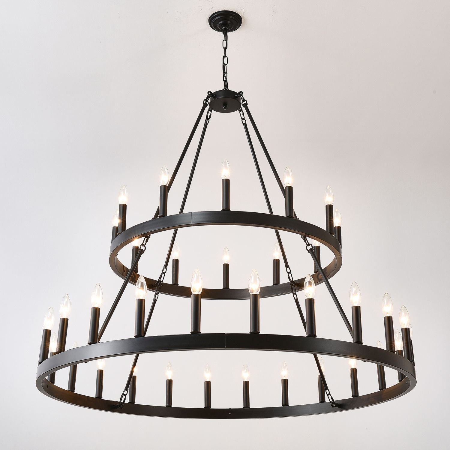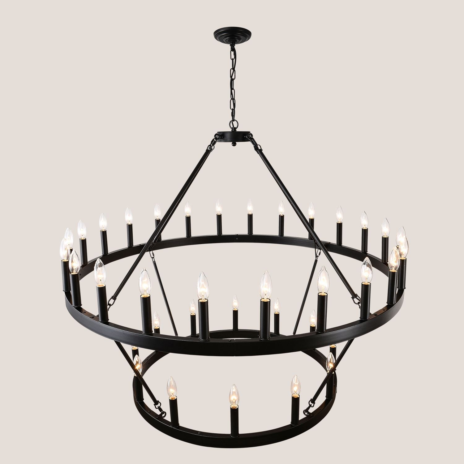 [Farmhouse Wagon Wheel Chandelier]The matte black wagon wheel chandelier features a high quality round frame that creates a vintage industrial and nostalgic style.