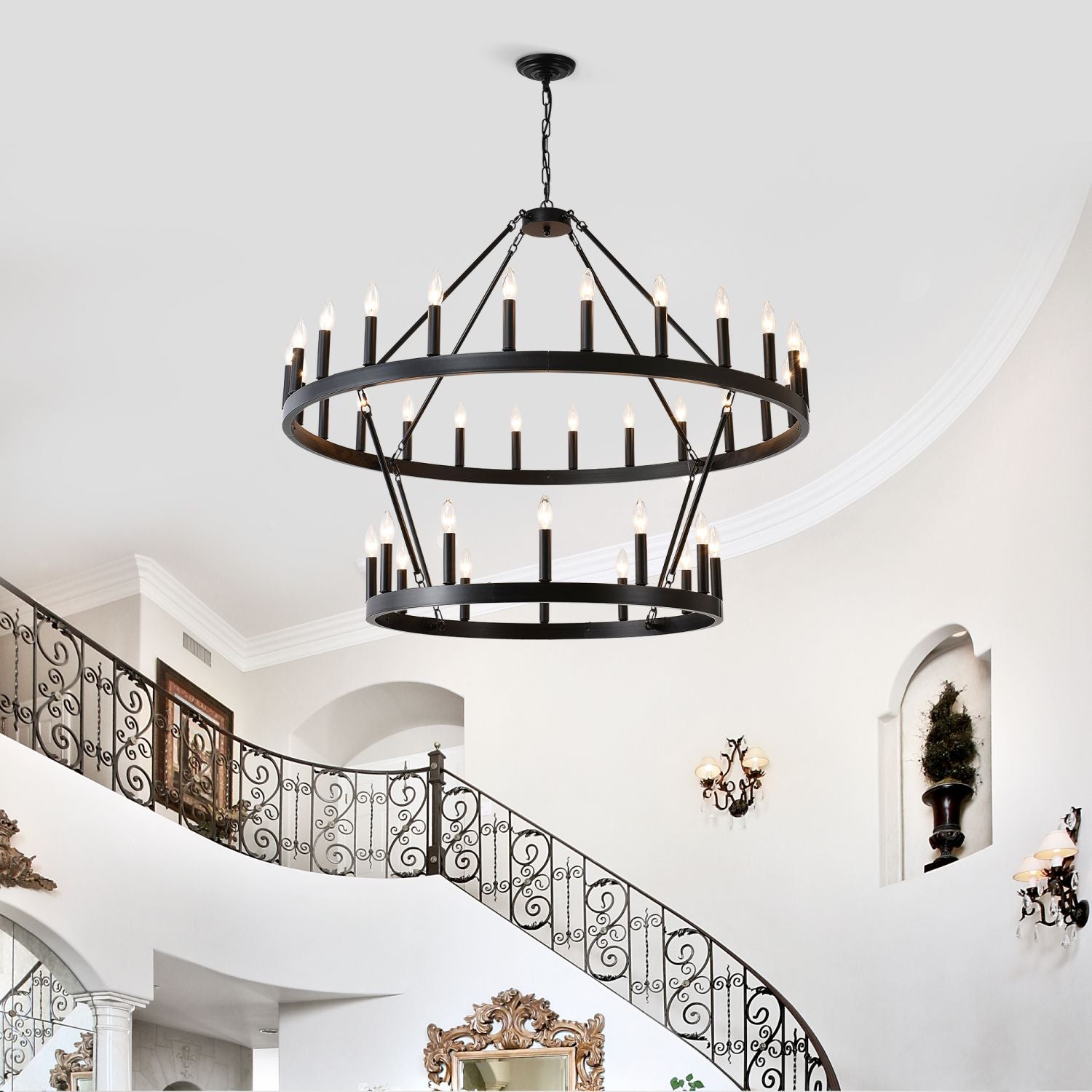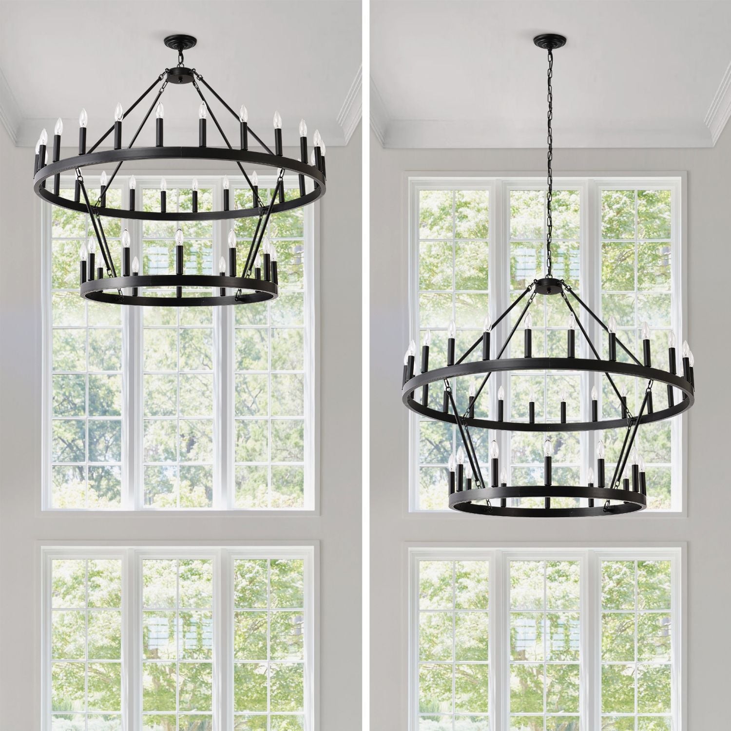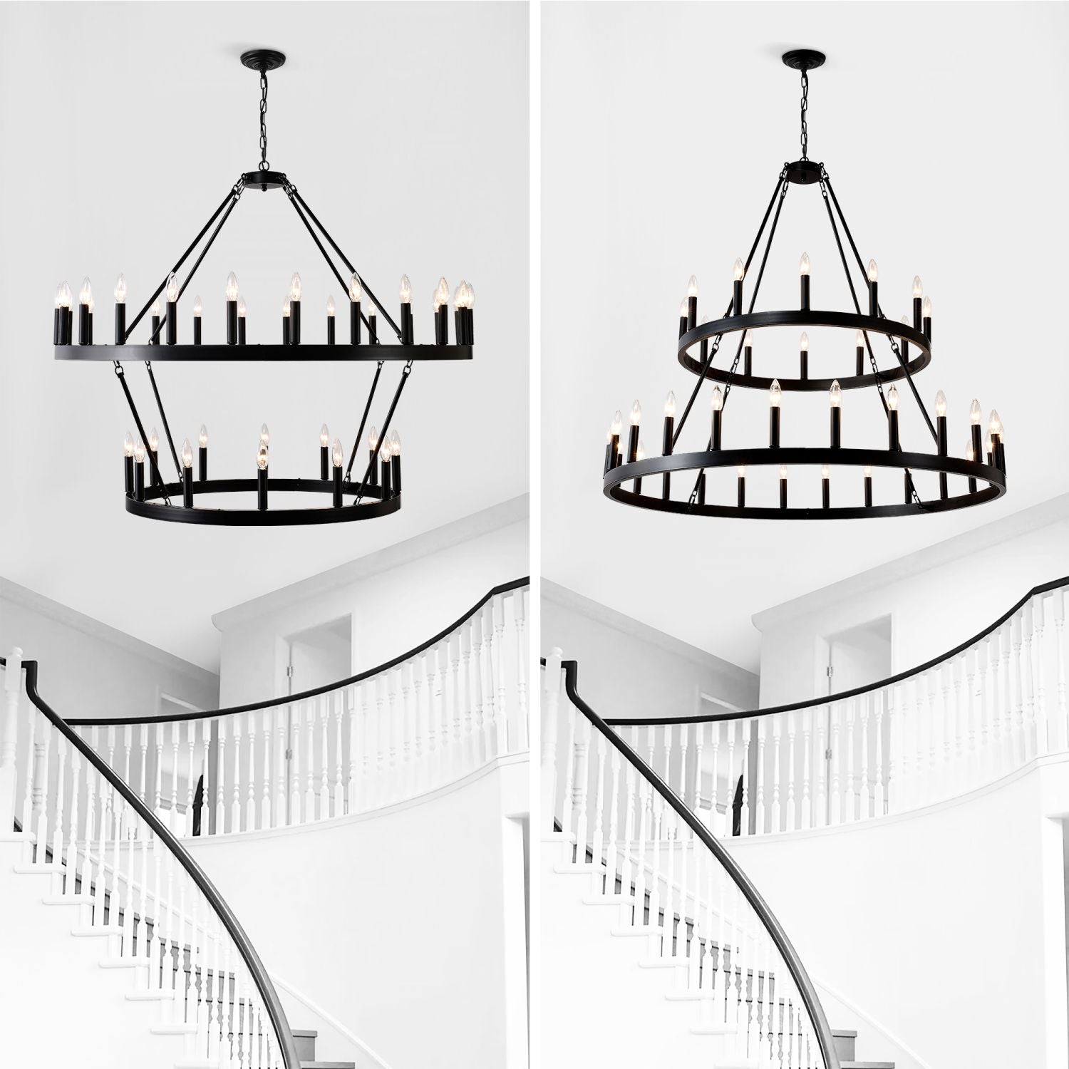 Adjustable Height -- The farmhouse chandelier comes with 3PCS Chain (1PCS x11.81inch, 1PCS*19.68INCH, 1PCS*39.37INCH, ). Maximum height of chandelier 79.92 inch.