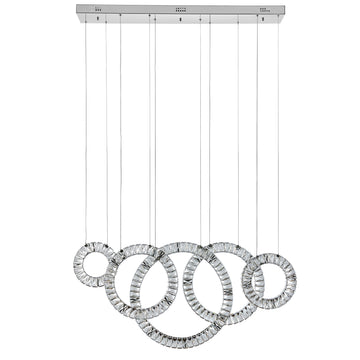 This 5 Hoop Crystal Progression Chandelier is a timeless piece that adds perfect dash of modern décor to any home. Finesse Decor's chandelier features a 5 ring chandelier that can be adjusted to suit your height needs.