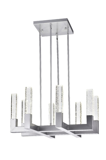 The 8 Light Square Crystal Dianyi LED Chandelier is a stunning and contemporary chandelier. It has a sleek silver metal frame that is enhanced with ravishing crystals that produce lights. This is a perfect chandelier to have above a dining room, in an entry way or in a living room.
