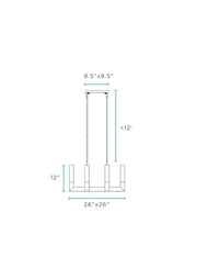 This fixture comes with a square canopy that measures 8.5"W X 8.5 "L and 1.5"in height. This chandelier also has adjustable height rods that allow it to be a versatile product that suits the different hanging heights that your space may need.