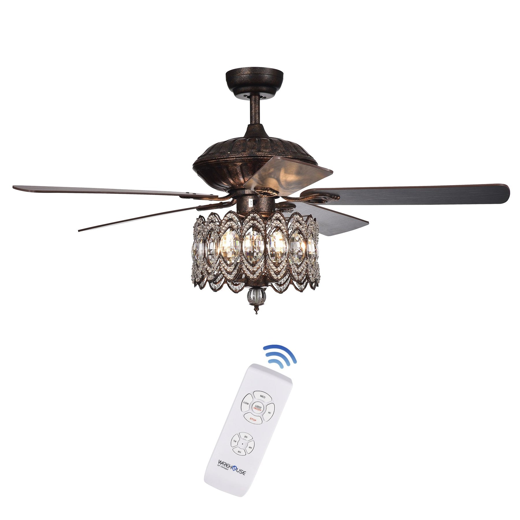 Simultaneously cool your home and add a regal elegance. Its rustic bronze finish, paired with a beautiful crystal- and glass-beaded, shaded light assembly, is a perfect compliment to traditionally styled spaces, while its matching stained wooden blades move enough air to ventilate you.