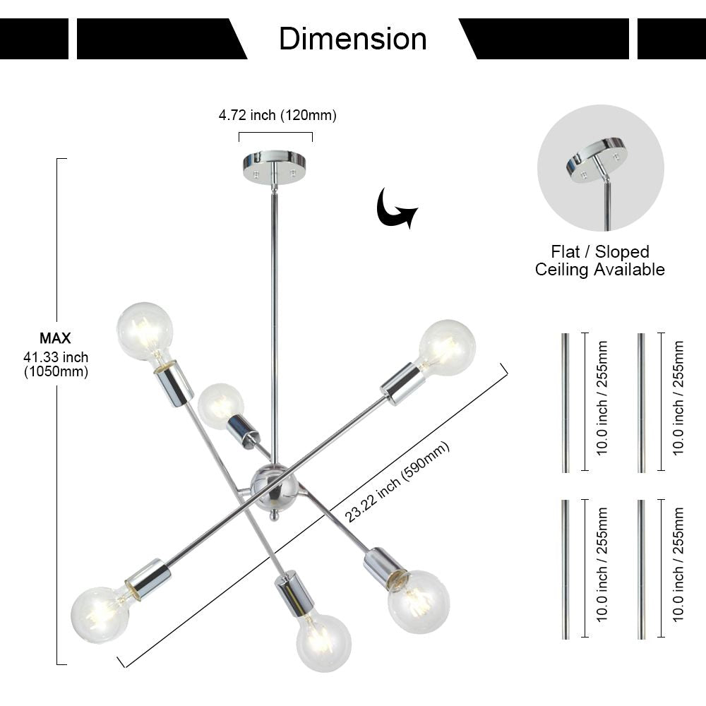Modern Design with adjustable arms, 6-light chandelier lighting inspired by Sputnik style fixtures. It's the perfect light fixture to install in kitchen, dining room, living room, foyers.