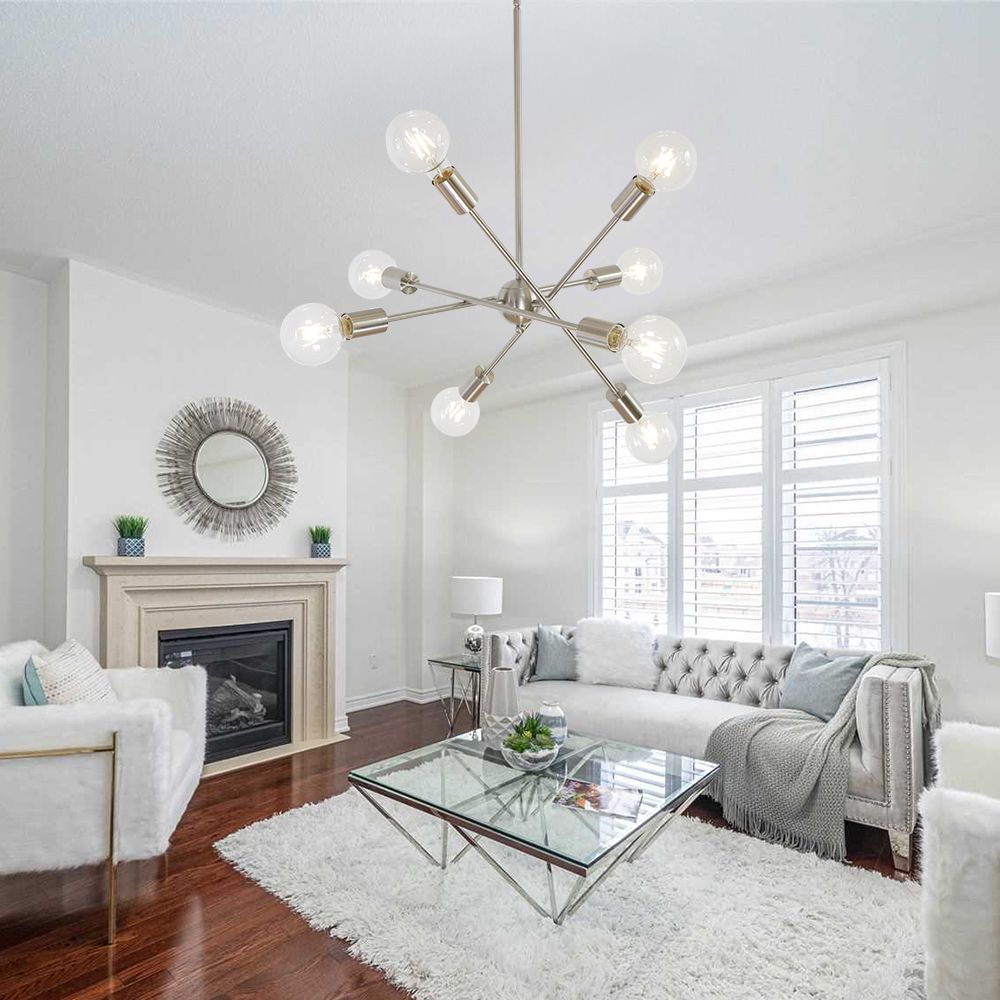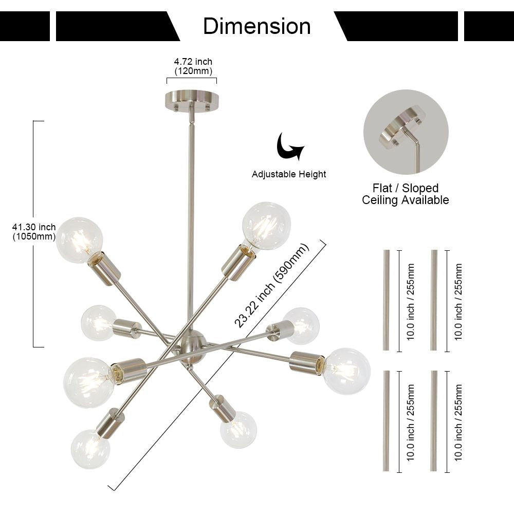 Modern Design with adjustable arms, 8-light chandelier lighting inspired by Sputnik style fixtures. It's the perfect light fixture to install in kitchen, dining room, living room, foyers.