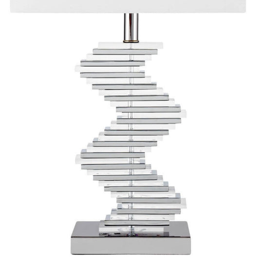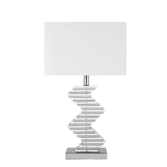 The Crystal Two Tone Paved Table Lamp (by Finesse Decor) features a dramatic and versatile crystal base with a linen shade.